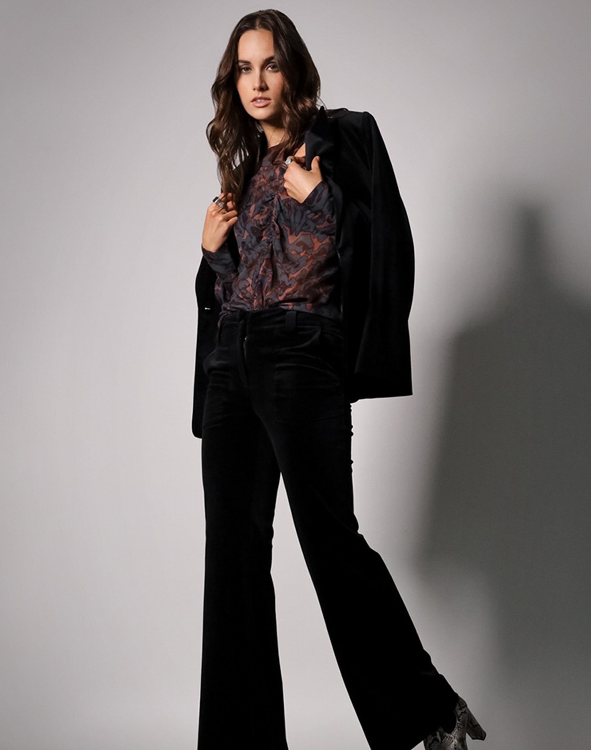 STOR-001 Sirius Smocked Bell Bottom Jumpsuit – Black – FINAL SALE
