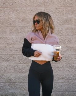 ALL-001 Circuit Cotton Blend Pocketed Half Zip Pullover – Black/ Mauve – FINAL SALE