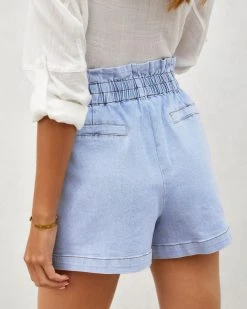 SKIE-001 Deena High Waisted Pocketed Shorts – Denim