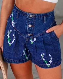 STOR-001 Smiles All Day Floral Pocketed Embroidered Denim Shorts – SALE