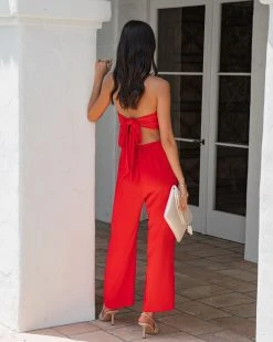 TYCH-001 Dolled Up Strapless Cutout Jumpsuit – Tomato Red – FINAL SALE