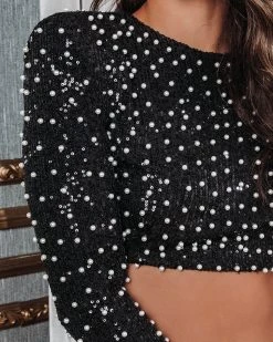 MABL-001 Such A Charmer Sequin Pearl Embellished Cropped Top – FINAL SALE