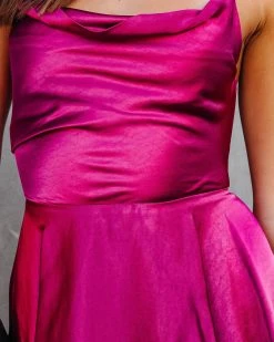 TYCH-001 Belle Of The Night Satin Cowl Neck Tank – Red – FINAL SALE
