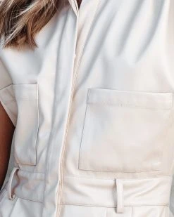ENDL-001 No Limitations Faux Leather Pocketed Romper – Beige