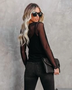 PROJ-001 Justine Long Sleeve Mesh Top – Black – FINAL SALE