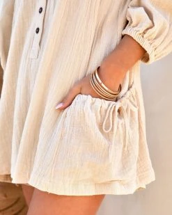 MABL-001 Beach Side Thoughts Pocketed Romper – Natural – FINAL SALE