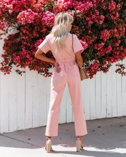 SKIE-001 Dumbo Cotton Pocketed Denim Jumpsuit – Coral – FINAL SALE