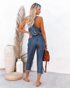 LOVE-003 Jana Pocketed Tencel Drawstring Jumpsuit – Dark Wash – LAST CHANCE