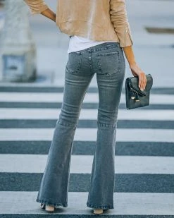 NEWB-001 Road Trip Distressed Bell Bottom Denim Pants – Light Charcoal – FINAL SALE