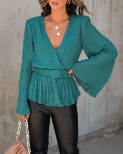SALT-001 Everything And More Pleated Belted Blouse – Hunter Green – FINAL SALE