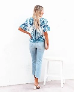 SALT-001 Valencia Rose Printed Blouse – Blue Multi – FINAL SALE
