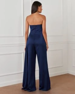 FORE-001 Avery One Shoulder Pocketed Jumpsuit – Navy – FINAL SALE