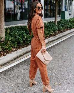 TEA-002 Halsey Cotton Pocketed Jumpsuit – Terracotta – FINAL SALE