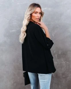 LUSH-001 Streamline Pocketed Textured Blazer – Black – FINAL SALE