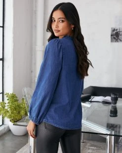 COLL-001 Mavi Tencel Button Down Ruffle Top – FINAL SALE