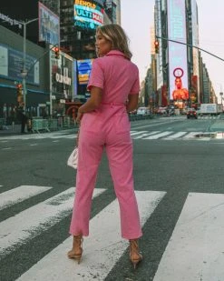 SKIE-001 Dumbo Cotton Pocketed Denim Jumpsuit – Pink – FINAL SALE