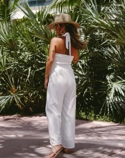 ACOA-001 Nikki Beach Halter Cutout Jumpsuit – Off White – LAST CHANCE