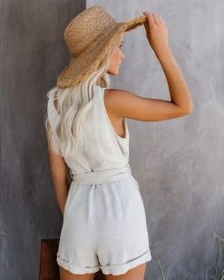 DRES-001 Garner Pocketed Button Down Tie Romper – Natural