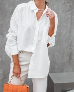BLU-001 East Coast Cool Relaxed Cotton Button Down Top – White – SALE