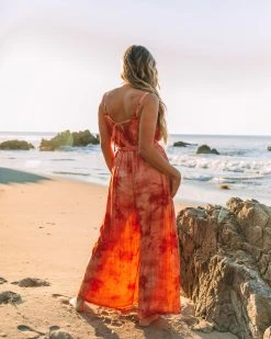 AEOM-001 Rosally Pocketed Tie Dye Jumpsuit – Rust – FINAL SALE