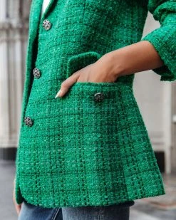 ENDL-001 Priestly Pocketed Tweed Blazer – Emerald – FINAL SALE