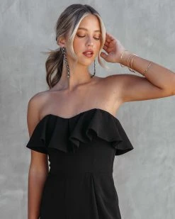 LUSH-001 Legend Has It Strapless Ruffle Jumpsuit – Black – FINAL SALE