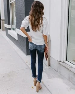 ENTR-001 Clarice Statement Sleeve Textured Top – Off White – FINAL SALE
