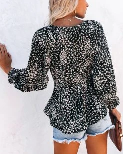 FLAW-001 Zilla Floral Smocked Tie Blouse – Black – FINAL SALE