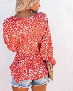 FLAW-001 Zilla Floral Smocked Tie Blouse – Candy Apple – FINAL SALE