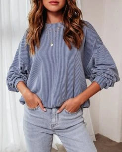 BUCK-001 Leah Ribbed Long Sleeve Top – Blue – SALE