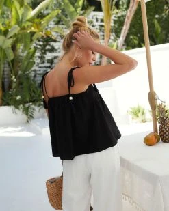 HYFV-001 Bodega Bay Cotton Shoulder Tie Top – Black