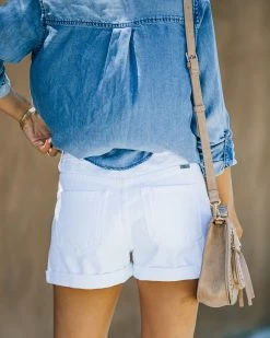 KANC-001 Tori High Rise Distressed Cuffed Denim Shorts – White – FINAL SALE