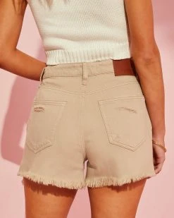 HIDD-002 Nandita High Rise Distressed Denim Shorts – Khaki