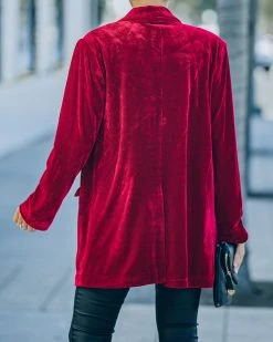 ENDL-001 Chicest Pocketed Velvet Blazer – Wine – FINAL SALE