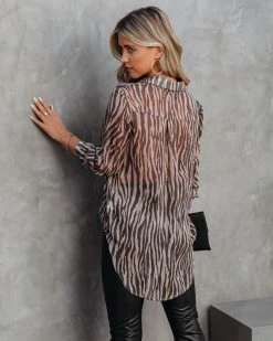 DRES-001 Monroe Tiger Print Button Down Blouse – FINAL SALE