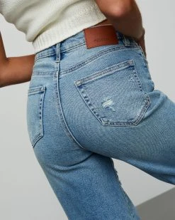 HIDD-002 Bronte High Rise Distressed Wide Leg Jeans – Medium Wash