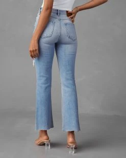 HIDD-002 Dezi Light Wash Slanted Hem Cropped Flare