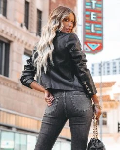 FATE-001 Lenny Pocketed Faux Leather Blazer – Black – FINAL SALE