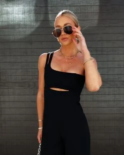 OLIA-001 Brayden One Shoulder Jumpsuit – Black – SALE