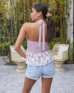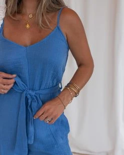 HYFV-001 Delaney Crochet Halter Wide Leg Jumpsuit – Light Blue