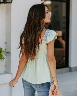 BLU-001 Granite Embroidered Babydoll Top – Mint
