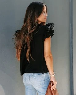 BLU-001 Meadow Crochet Ruffle Sleeve Top – Black – FINAL SALE
