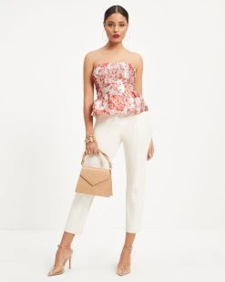 FATE-001 Dreaming Of Versailles Jacquard Strapless Peplum Top – Orange – FINAL SALE