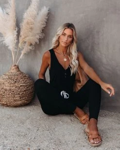OLIV-001 Forward Pocketed Drawstring Jumpsuit – Black – FINAL SALE