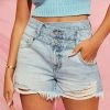 Our Dominique High Waisted Denim Shorts look classy while maintaining comfort! These white wash high waisted denim shorts are designed with a sewn cuffed hem and front fly zipper and button closures. Styled with the Sheila Straw Sun Hat, Perfect Hoop Earrings, The Buddha Wheel Necklace, Simple Bangle Bracelet, Pyramid Cuff Bracelet, Diamond Charm Choker, Lexi Chain Ring, Alana Crossbody Handbag, and Johan Linen Blend Tie Front Crop Top.