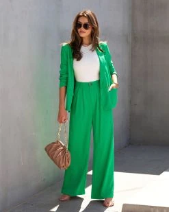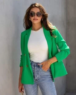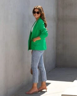 A blazer set is the ultimate boss babe look! Our Long Shot Pocketed Blazer comes in kelly green with a notched collar.