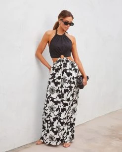 Model is Wearing a Size Small. Height is 5’7″, Bust is 32”, Waist 25”, and Hips 30”