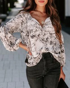 Look cute in the office in the French Countryside Dreaming Printed Tassel Tie Blouse in multi that features a flowy body.