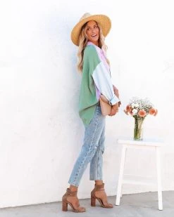 //Best Seller// New Color// Refresh your Spring Collection in the Cindy Cotton Colorblock Button Down Top in lavender, mint, light blue, and cream with a bust pocket.
