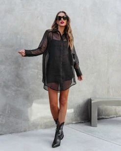 Trendy babes will love the Endless Potential Organza Tunic in black that features front button closures.